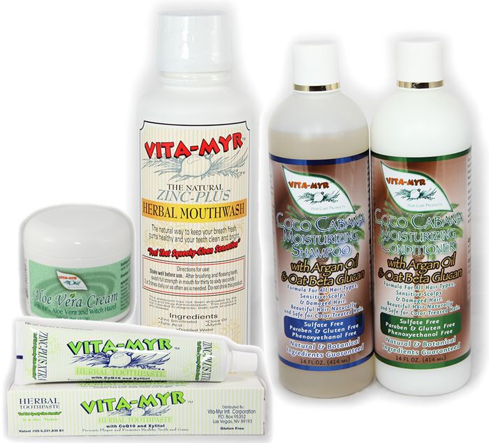 VITA-MYR Natural All-in-One Set - Hair Care, Mouthwash, Toothpaste, and Aloe Vera Cream (Coco Cabana)