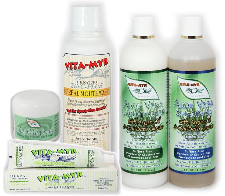 VITA-MYR All-in-One Natural Care Set - Shampoo/Conditioner (Aloe Vera), Mouthwash, Toothpaste, Aloe Vera Cream